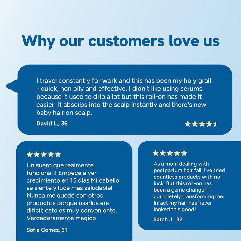 90% users noticed reduced hair fall in 4 weeks; new baby hairs in 8 weeks.